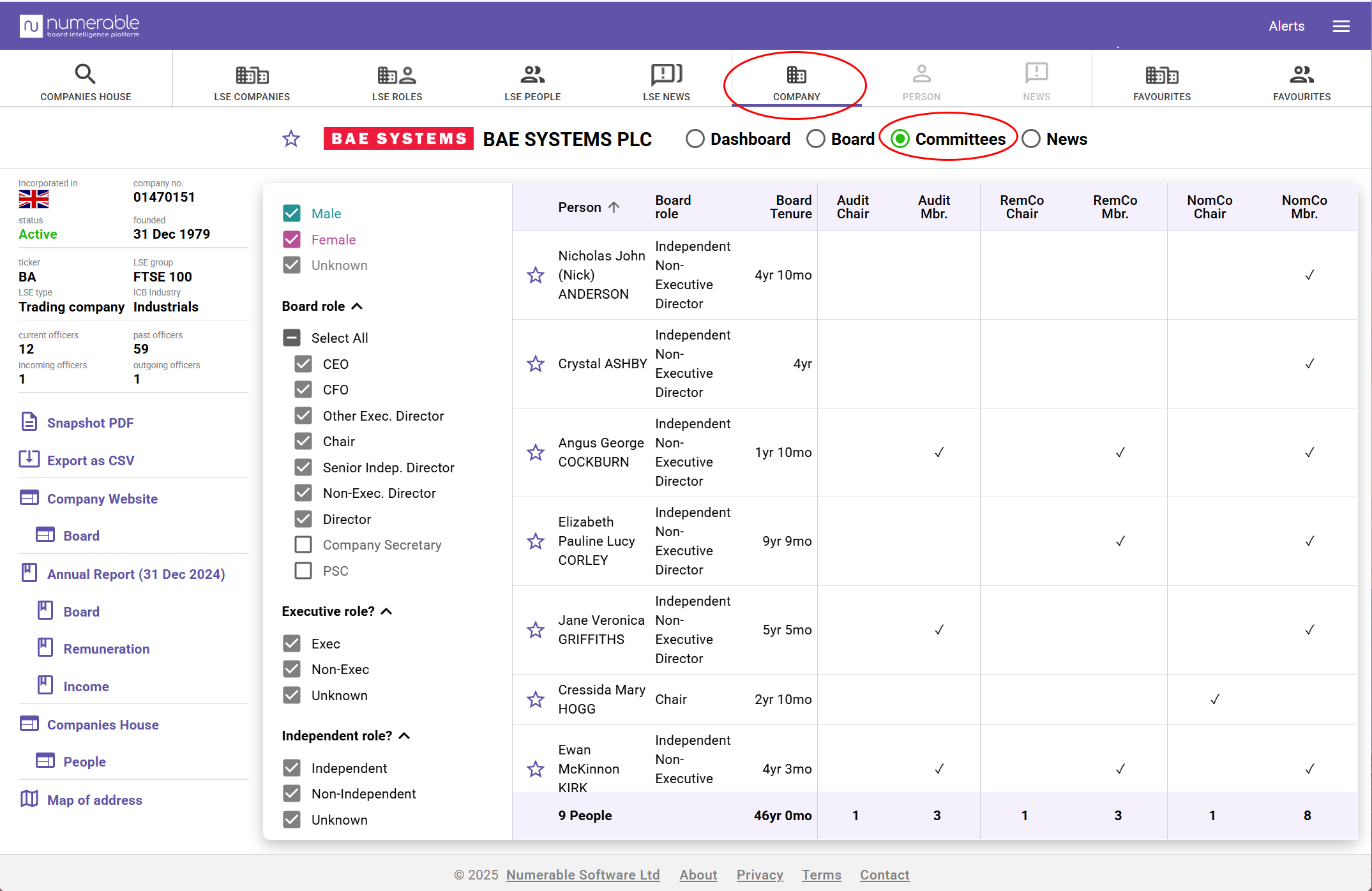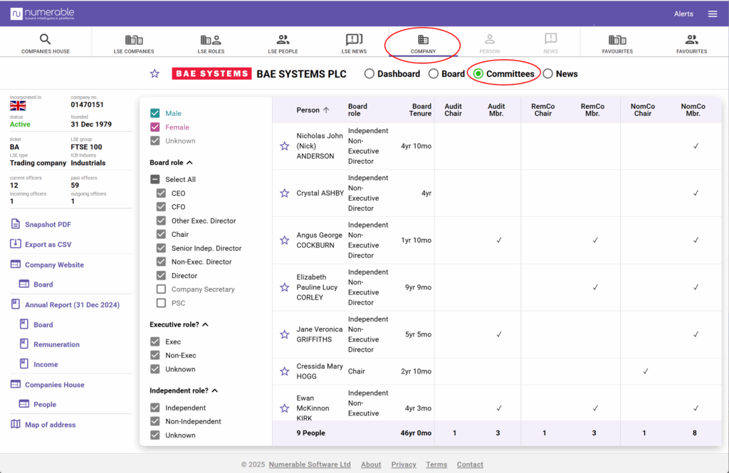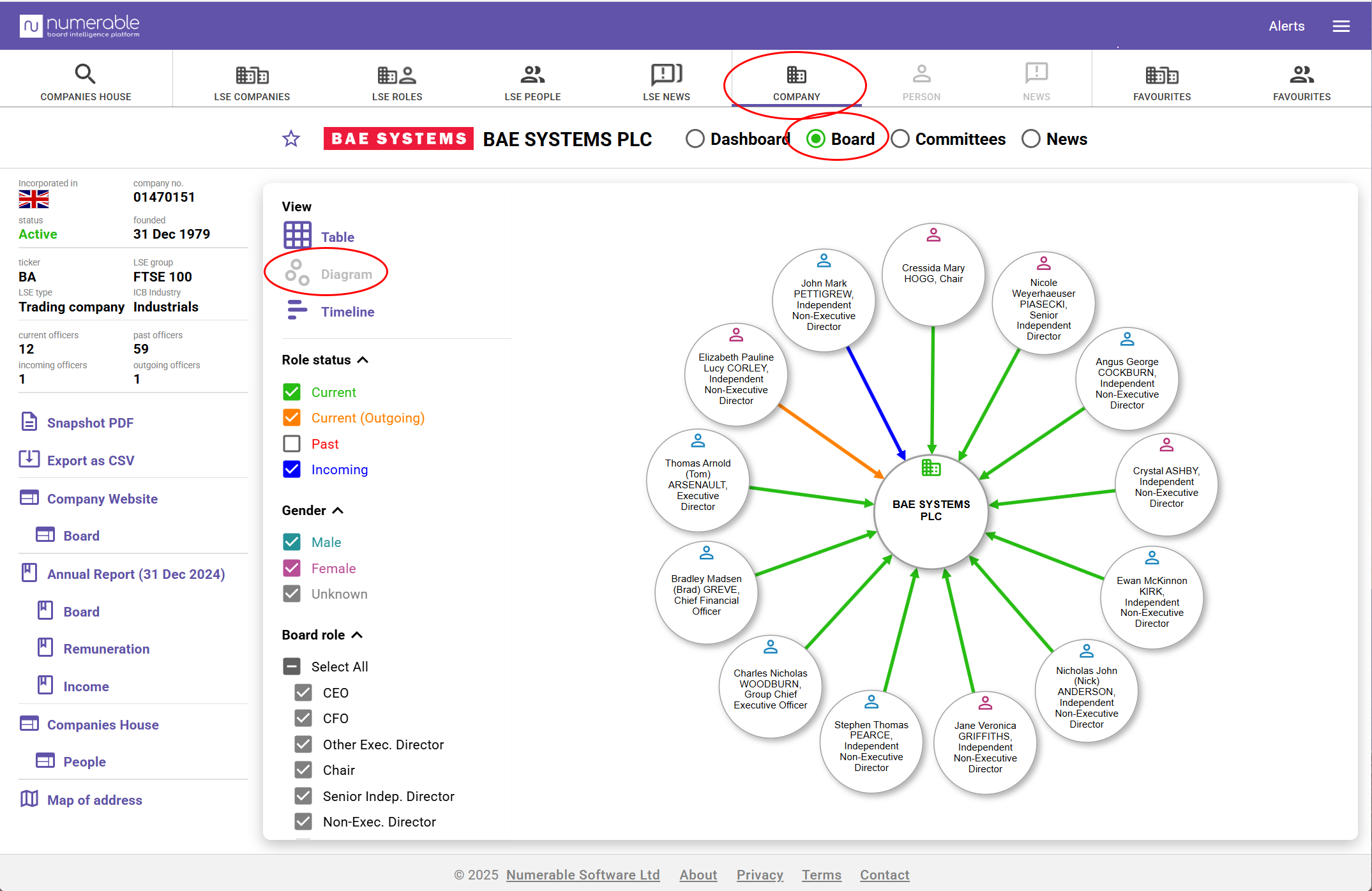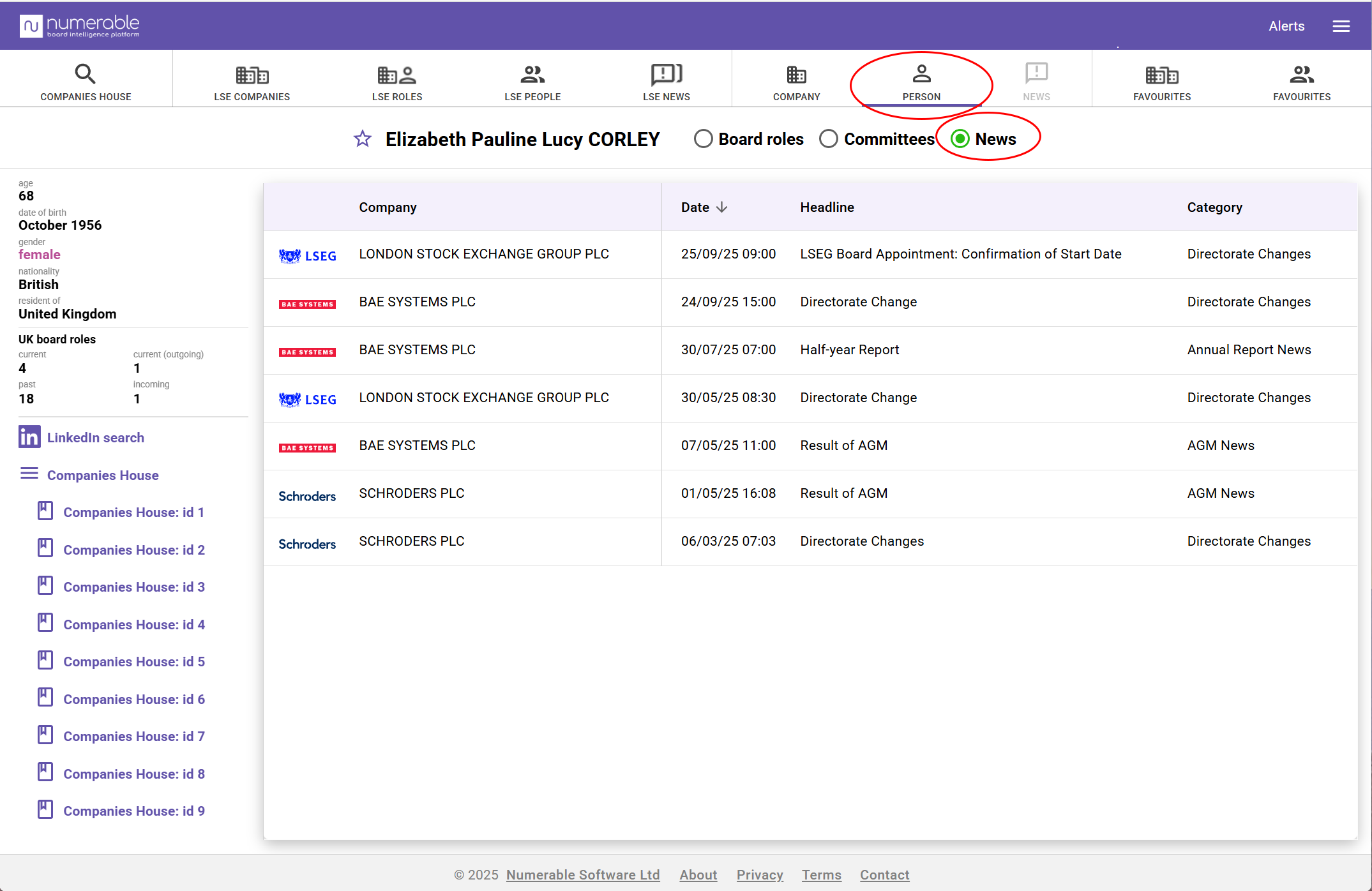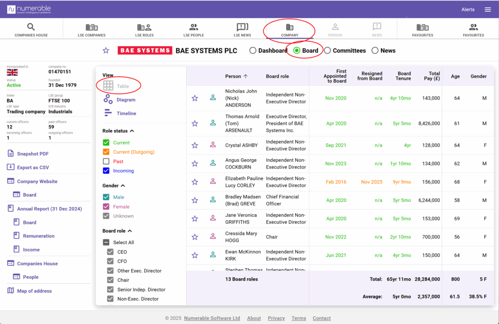 • View the person’s board and PSC roles as a table, connection diagram or timeline
